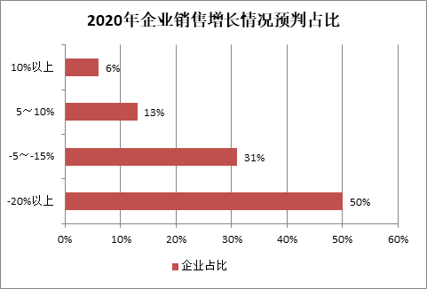 協會此次調查的樣本企業情況又好于重點大型企業。調查顯示,只有半數企業2020年銷售收入與2019年相比,下降20%左右,而近40%的企業銷售收入下降5-10%,還有近20%的企業實現了正增長。具體情況看見下圖一。